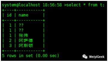 3.在查询的时候如果想看不是uft8字符集插入的数据而是latin1的话就必须set names latin1才能查看正常