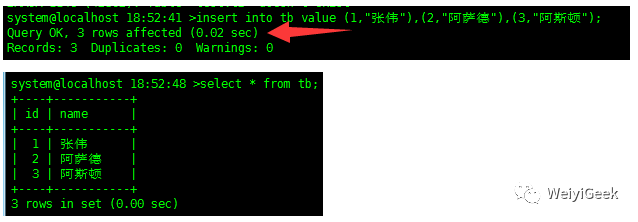 /** tb.sql insert into tb value (7,"爱您"),(8,"一万年"),(9,"不变"); **/