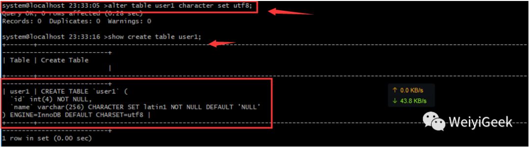 注意:这个两个命令都没更新已有记录得字符集,而是只是对于新建立得表或者记录生效;