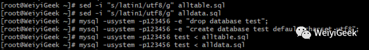 下面模拟线上业务,数据库编码转换,将latin1-->>>utf8字符集