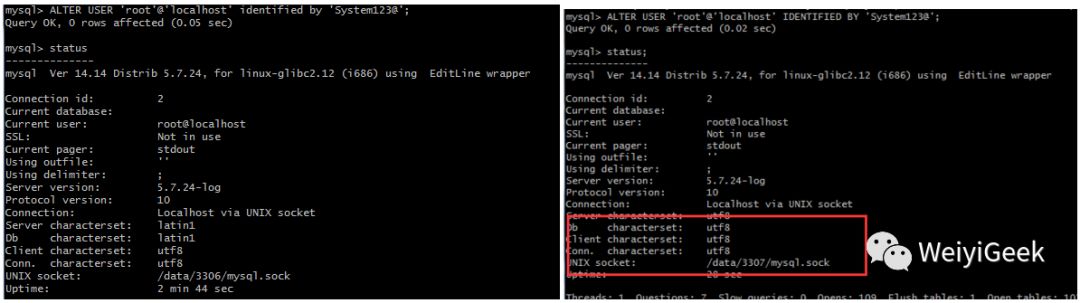 [root@WeiyiGeek ~]$ /data/3307/mysql root 123.asd start