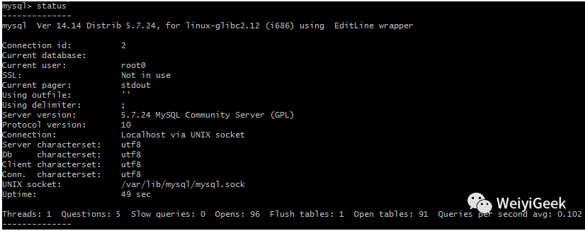 当MySQL实例启动时,会将自己的进程ID写入一个文件中——该文件即为pid文件;该文件可由参数pid_file控制,默认位于数据库目录下,文件名为主机名.pid: