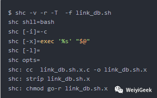 link_db.sh.x #原来脚本的可执行文件,可随意改名,不用赋权,shc处理的过程中有赋权这一步;然后将link_db.sh.x进行改名并放在/usr/bin目录下;(直接执行)
