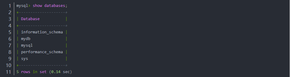 严格来说,一个 MySQL 实例管理的是多个数据库(也叫模式,Schema)包括系统数据库 mysql、information_schema、performance_schema、sys 以及用户创建的数据库等。使用SHOW DATABASES或者SHOW SCHEMAS命令查看当前实例中的数据库: