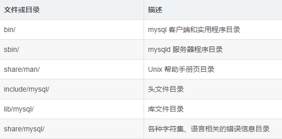 安装目录(Base Directory)是 MySQL 服务器的安装路径,Linux 上使用 RPM 包安装的默认位置为 usr/。安装目录中主要包含以下内容: