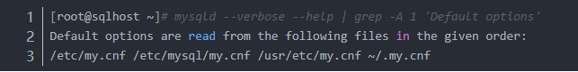MySQL 服务器进程和各种工具程序启动时,需要通过配置文件(my.cnf 或者 my.ini)读取各种参数。Linux 上使用 RPM 包安装的默认配置文件为 /etc/my.cnf,可以使用mysqld --verbose --help