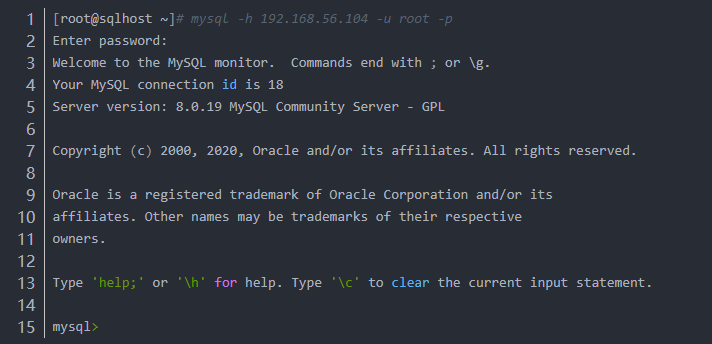 我们使用 mysql 客户端工具连接到 MySQL 服务器:
