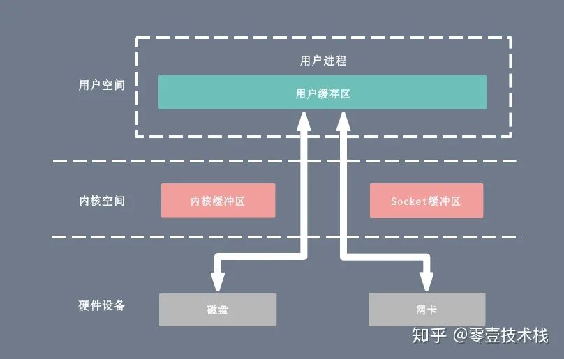 用户态直接 I/O:应用程序可以直接访问硬件存储,操作系统内核只是辅助数据传输。这种方式依旧存在用户空间和内核空间的上下文切换,硬件上的数据直接拷贝至了用户空间,不经过内核空间。因此,直接 I/O 不存在内核空间缓冲区和用户空间缓冲区之间的数据拷贝。