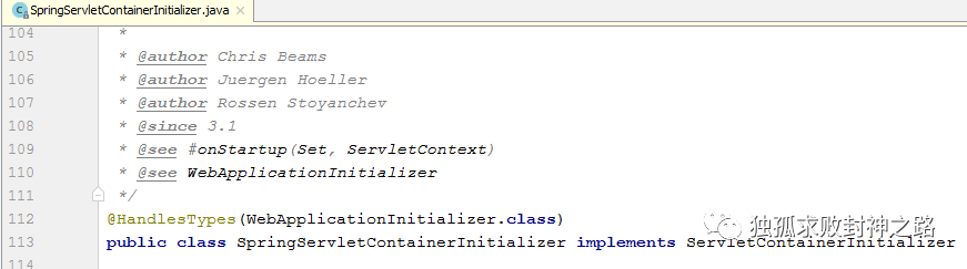 你可以猜到,这里的 SpringServletContainerInitializer 就是实现了 ServletContainerInitializer .