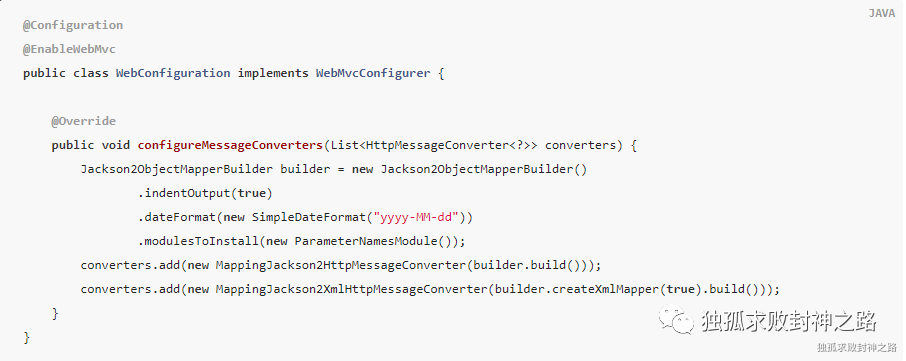 现在我们在代码里想配置 JSON 的解析器,代码可以如下: