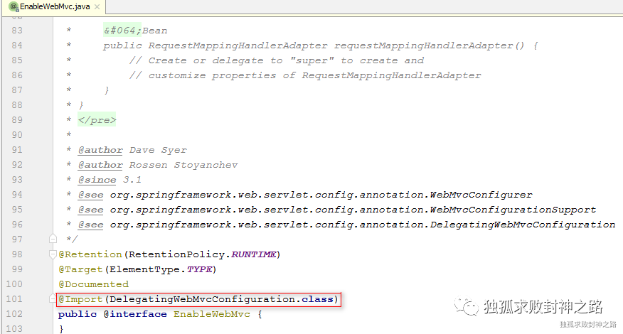 同样,如果你不想使用 @EnableWebMvc ,那么你可以直接去继承 DelegatingWebMvcConfiguration . 如下所示 :