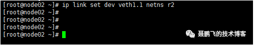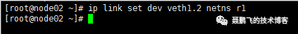 现在我们需要做的是,将veth1.2移动到网络名称空间r1中去。需要使用如下命令: