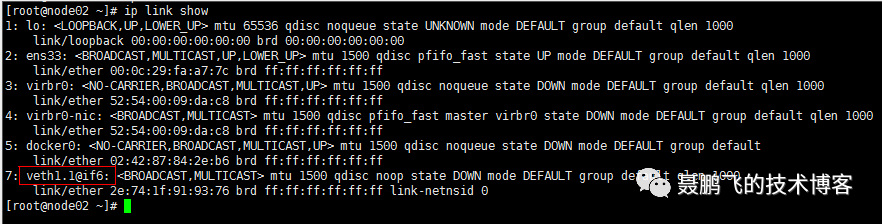 再使用ip link show命令,可以查看当前宿主机上面的虚拟网卡,发现只有veth1.1了。
