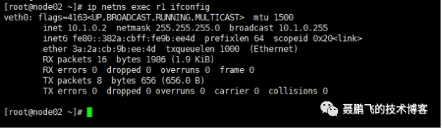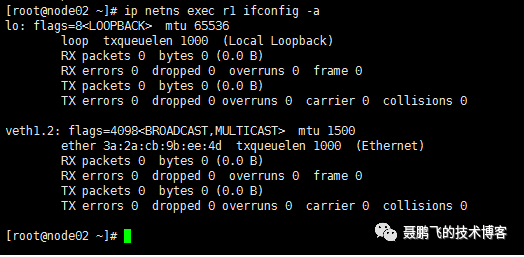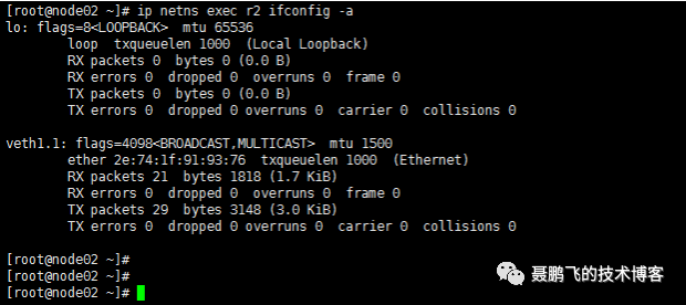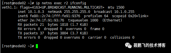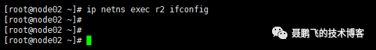现在我们再次运行:ip netns exec r2 ifconfig 可以看到网卡设备