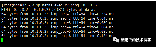至此,r1 和 r2 这两个网络名称空间中的网卡,就这么手动的被我们搞通信了。