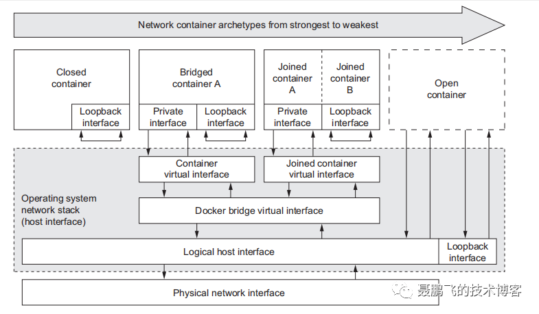 容器与宿主机通信 : 在桥接模式下,Docker Daemon 将 veth1,veth2,veth3 附加到 docker0 网桥上,保证宿主机的报文有能力发往 docker0网桥上面的veth1,veth2,veth3。再将 veth0 添加到 Docker 容器所属的网络命名空间[网络命名空间是用于隔离网络资源(/proc/net、IP 地址、网卡、路由等)。由于一个物理的网络设备最多存放在一个网络命名空间中,所以通过 veth pair 在不同的网络命名空间中创建通道,才能达到通信的目的],保证宿主机的网络报文若发往 veth1,veth2,veth3 可以立即被Docker 容器上的 veth0 收到。