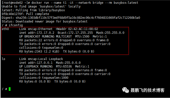 docker run --name t1 -it --network bridge --rm busybox:latest
