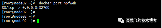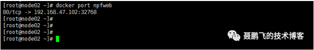使用 docker port npfweb 命令,可以显示当前容器的端口映射。