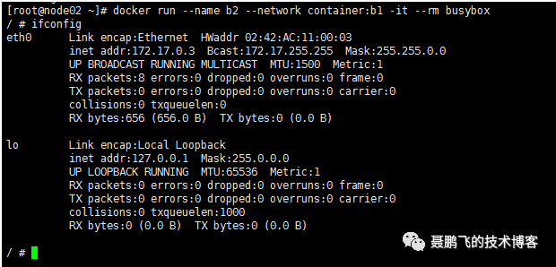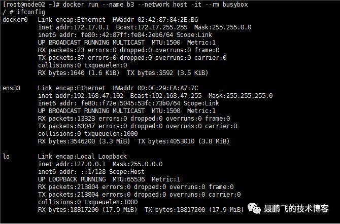 很明显,在 b3 这个容器里面看到,都是宿主机的网络。