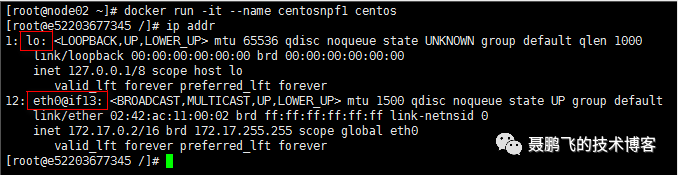 接下来我们创建一个名为centosnpf1的容器,并观察其网络配置: