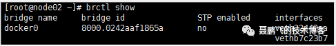 通过brctl show命令我们可以看到,docker0网桥上面的网卡接口。