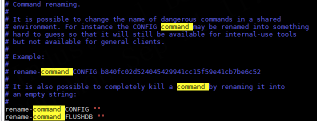 【解决方案】:修改redis.conf对重要命令进行隐藏,使其不能被随意执行。包括不限于flushdb, flushall, pexpire, del, config, shutdown, bgsave, save, stop, srm, rename, debug, eval, grewriteaof等。