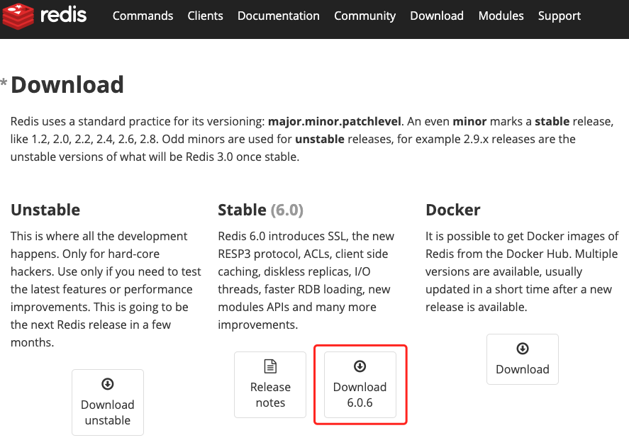 官方下载地址:https://redis.io/download ,先去下载个稳定版本,本篇以最新版6.0.6为例讲解。