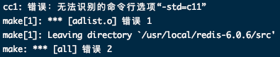 这里出现了个错误 -std=c11,原因是g++版本低,需要4.8以上版本