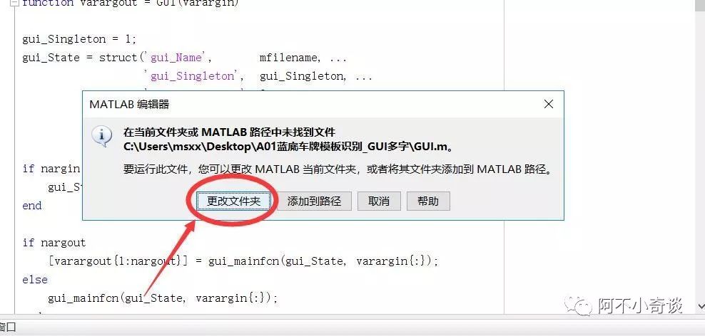 会弹出一个“MATLAB编辑器”窗口,选择更改文件夹;