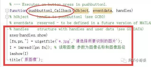 9.进入m文件的编辑界面,找到“按钮”的callback函数,对其进行如下编辑;