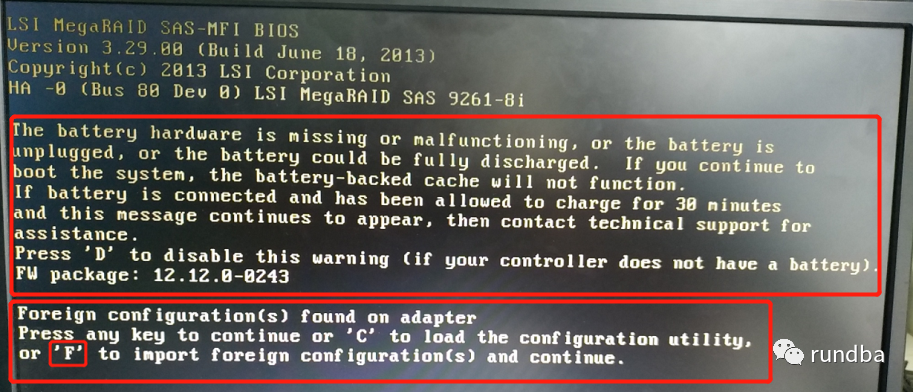 正常启动时,会提示按F导入外部配置或按C加载配置功能,此处选择F,系统会自动将磁盘的RIAD信息同步到新RAID上。