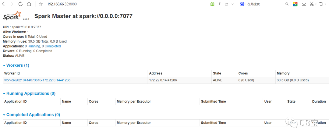 56b0cfd6181ced pingcap/tispark:latest "/opt/spark/sbin/sta…" 20 minutes ago Up 26 seconds 0.0.0.0:7077->7077/tcp, 0.0.0.0:8080->8080/tcp tidb-docker-compose_tispark-master_1