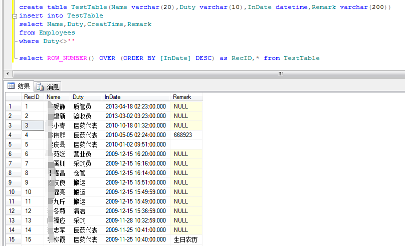 微软从SQL SERVER 2005开始提供了一个函数:row_number(),用来生成行号。