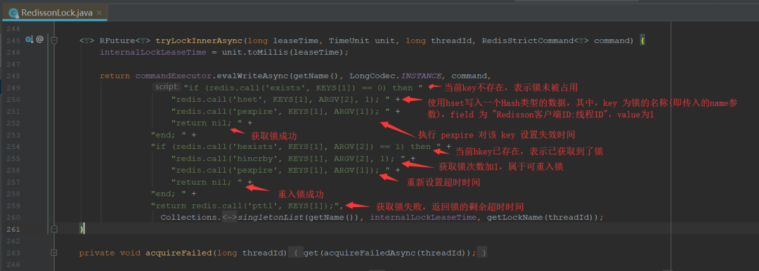 ttl = tryAcquire(leaseTime, unit, threadId);