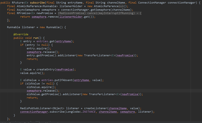subscribeFuture.addListener(new FutureListener<RedissonLockEntry>() {