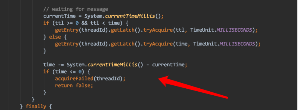 getEntry(threadId).getLatch().tryAcquire(ttl, TimeUnit.MILLISECONDS);