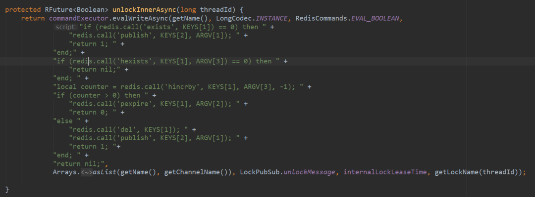 Collections.<Object>singletonList(getName()), internalLockLeaseTime, getLockName(threadId));