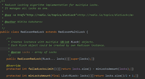 RedissonRedLock redLock = new RedissonRedLock(lock1, lock2, lock3);