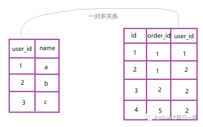 一对多是一个实体的某个数据与另外一个实体的多个数据有关联关系, 比如: 用户表和用户订单表。一个用户有多个订单。
