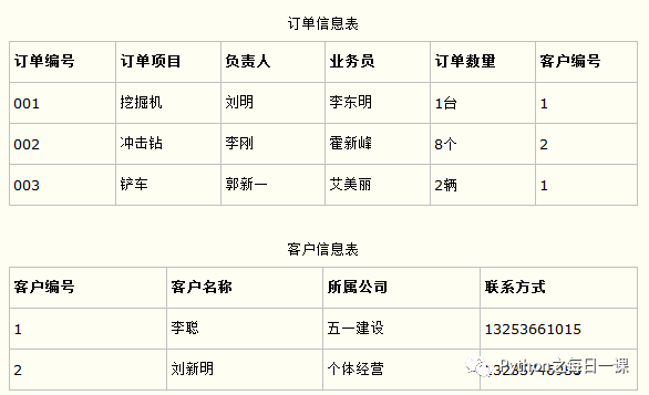 比如在设计一个订单数据表的时候,可以将客户编号作为一个外键和订单表建立相应的关系。而不可以在订单表中添加关于客户其它信息(比如姓名、所属公司等)的字段。如下面这两个表所示的设计就是一个满足第三范式的数据库表。