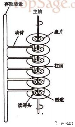所有的盘片都固定在一个旋转轴上,这个轴即盘片主轴。而所有盘片之间是绝对平行的,在每个盘片的存储面上都有一个磁头,磁头与盘片之间的距离比头发 丝的直径还小。所有的磁头连在一个磁头控制器上,由磁头控制器负责各个磁头的运动。磁头可沿盘片的半径方向动作,(实际是斜切向运动),每个磁头同一时刻也必须是同轴的,即从正上方向下看,所有磁头任何时候都是重叠的(不过目前已经有多磁头独立技术,可不受此限制)。而盘片以每分钟数千转到上万转的速度在高速旋转,这样磁头就能对盘片上的指定位置进行数据的读写操作。
