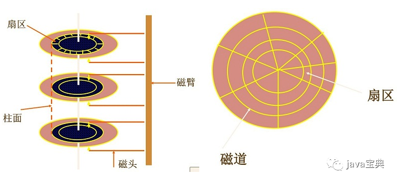 盘面号:扇区所在的磁头(或盘面) 柱面号:磁道,确定磁头的径向方向。扇区号:在磁道上的位置。也叫块号。确定了数据在盘片圆圈上的位置。
