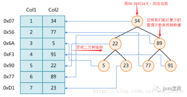 我们发现,相比较于红黑树,hash可以固定“深度”,且映射到磁盘存储引用,这样查找数据直接告诉磁盘数据在哪,查找数据也挺快的,但是 hash 还是有些不足:那就是不能范围查找,比如我们查找Col1>1的数据,当然如果我们查询操作很少的话,我们也可以选择hash数据结构,因为它查找数据挺快的,这也是mysql的索引方法除了B+Tree还有hash
