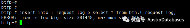 我们开始对每个表导入原表的数据看错误日志中是否有什么显示。