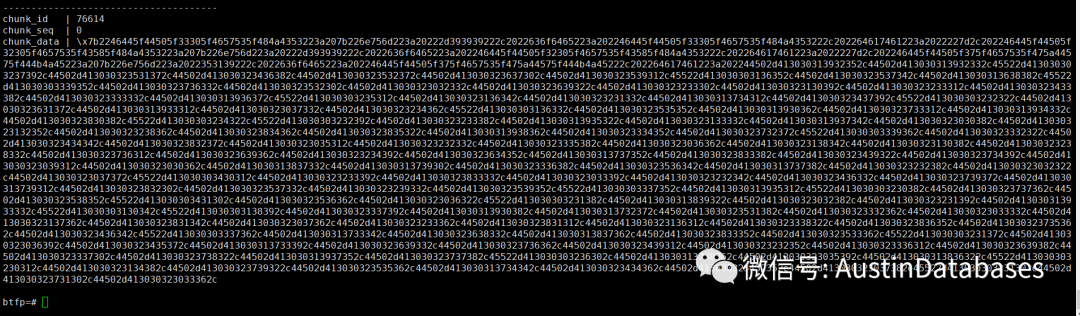 toast表中的信息主要包含chunk_id对应的主表的OID,同时还是chunk_seq对应这段数据与原表存储的位置,后面chunk_data就是数据了。