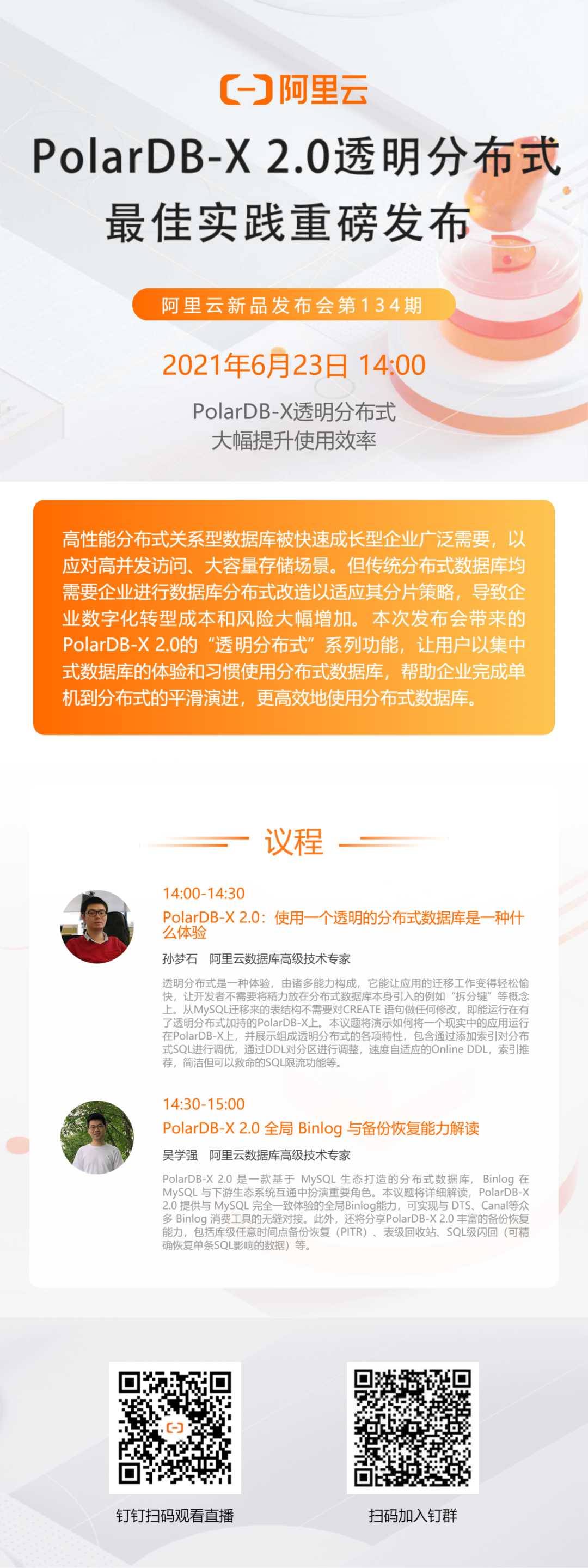 6月23日,阿里云数据库高级技术专家重磅发布PolarDB-X 2.0的“透明分布式”系列功能,让用户以集中式数据库的体验和习惯使用分布式数据库,帮助企业完成单机到分布式的平滑演进,更高效地使用分布式数据库。