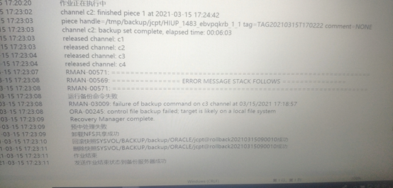 最近使用备份软件对客户11G RAC数据库进行备份,发现备份失败查看日志发现数据库报ORA-00245: control file backup failed; target is likely on a local file system错误。