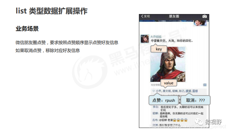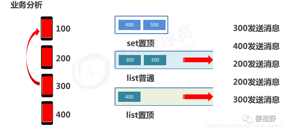 使用微信的过程中,当微信接收消息后,会默认将最近接收的消息置顶,当多个好友及关注的订阅号同时发送消息时,该排序会不停的进行交替。同时还可以将重要的会话设置为置顶。一旦用户离线后,再次打开微信时,消息该按照什么样的顺序显示?依赖list的数据具有顺序的特征对消息进行管理,将list结构作为栈使用对置顶与普通会话分别创建独立的list分别管理当某个list中接收到用户消息后,将消息发送方的id从list的一侧加入list(此处设定左侧)多个相同id发出的消息反复入栈会出现问题,在入栈之前无论是否具有当前id对应的消息,先删除对应id推送消息时先推送置顶会话list,再推送普通会话list,推送完成的list清除所有数据消息的数量,也就是微信用户对话数量采用计数器的思想另行记录,伴随list操作同步更新Tips 15:redis 应用于基于时间顺序的数据操作,而不关注具体时间