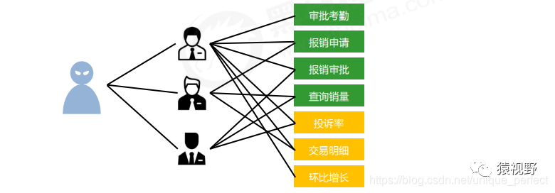 集团公司共具有12000名员工,内部OA系统中具有700多个角色,3000多个业务操作,23000多种数据,每位员工具有一个或多个角色,可以快速进行业务操作的权限校验