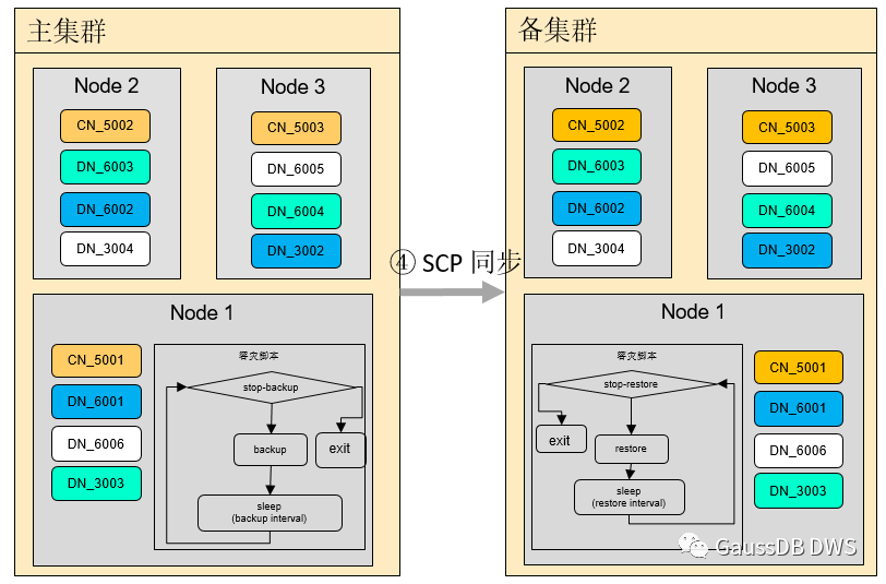 GaussDB(DWS)的容灾方案是一个双集群同步的架构,即两套独立集群定期同步数据以达到容灾的目的。目前数据同步的方式是通过roach(GaussDB(DWS)备份、恢复工具)定期做增量备份和恢复同步。本文通过介绍双集群的架构、log结构、典型问题分析来介绍双集群容灾的问题分析方法。GaussDB(DWS)的容灾方案是一个双集群同步的架构,即两套独立集群定期同步数据以达到容灾的目的。目前数据同步的方式是通过roach(GaussDB(DWS)备份、恢复工具)定期做增量备份和恢复同步。双集群框架是一个复杂的分布式系统,在出现问题时,如何快速准确的定位问题及恢复服务是一个非常紧迫的问题,这个问题在云上会更突出。本文通过介绍双集群的架构、log结构、分析步骤来介绍双集群容灾的问题分析方法。首先介绍一下双集群的部署方案原理,从部署架构和重要参数两个方面先介绍一下背景知识,便于更好理解问题分析的方法。下图是一个同构的双集群部署示意图,主备集群都是3c3d, 主集群的主结点部署双集群框架脚本,定期进行备份操作,备集群的主结点定期恢复备份集。基础数据需要进行一全量备份,之后增量备份。